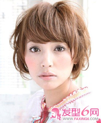 短发丝烫出轻盈的蓬松效果,造型更动感活泼,削弱了严肃的干练气息,使发型不单调沉闷。侧发与斜刘海组合是修饰圆脸的关键,到眼睛的长度,使脸型瞬间减小,;两边蓬松侧发,慢慢收敛脸型的宽度,视觉上脸型瘦了不少,长脸、圆脸女生都适合。