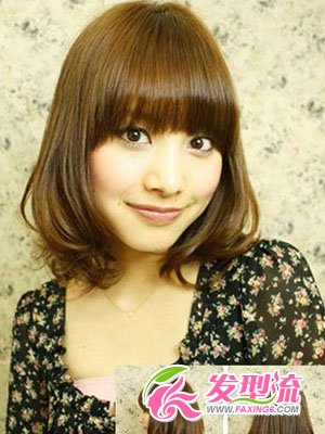 整洁干净的齐刘海有着很好的减龄效果,非常适合喜欢卖萌的轻熟女们哦!这款女生发型的打造重点就在于发梢那内扣的卷卷了,不但塑造出好看的小V脸,也将发量较少的现象掩盖了起来,漂亮的染发颜色也起到了不少的作用哦!