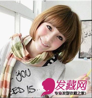 带有弧度的齐刘海年轻的MM们都喜欢,齐刘海制造出可爱甜美的效果,把发梢做出内卷的效果,能更好的修饰五官,发尾与脸型相衬托,肉肉的脸马上变得精致可爱,圆润而甜美,金棕色的染发,看上去更加甜美文静,令人心神荡漾哦!