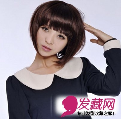 一款非常瘦脸和减龄的发型,想变小脸,想扮嫩,那么这款波波头发型就是很不错的选择了。萌萌的齐刘海的修饰脸型效果,甜美又小脸!2013年