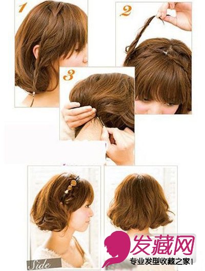 打造步骤1. 先在一边选取耳朵附近的头发绑成辫子,并把它往上放在头顶。2. 选取另外一边采用相同方法。3. 用发夹把发尾的头发收在头发下面,制造出盘发的感觉。