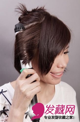 Step 3:用卷发器向内侧卷下半部分头发,注意要留出