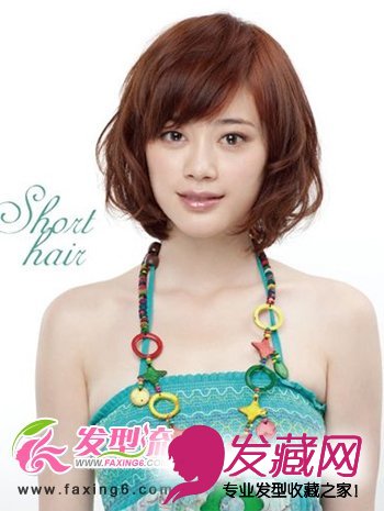 卷发BOBO头发型轻松打造出了轻熟女的小资范儿。头发的微卷让发型显得更加自然大方,两侧的卷发贴合脸颊,遮住了部分肉肉脸,让脸看上去更加尖细。