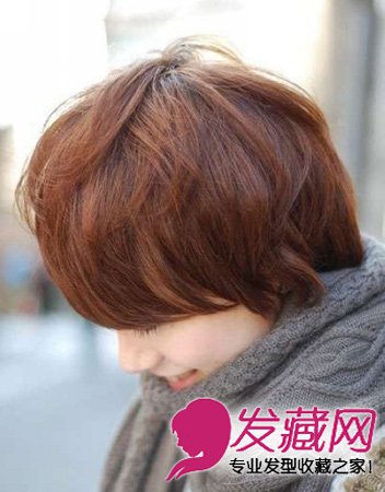 圆圆的发顶,乱乱的层次,俏皮可爱。美丽的铜色,感觉很温暖。