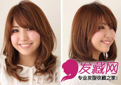 棕红发色给人很舒适的感觉,两颊两边头发蓬松的效果,完全淡化了肉肉的脸颊,瘦脸于无形之中。