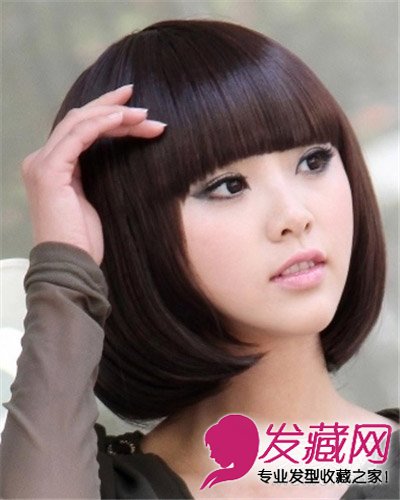 齐刘海的短发波波头发型,柔顺的发丝搭配简单的包脸设计的波波头秀发,在脸颊下层卷起的发丝和澄净的柔顺蓬松梳发样式,修饰出脸型的时尚设计的短发波波头,因着秀发的圆润和自然地滑度,更添秀气和典雅的形象。