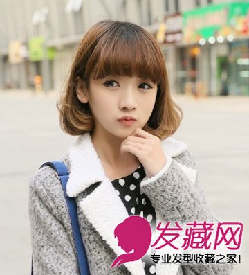 ,卷翘的发丝丰盈有致,清甜又时髦,整齐的刘海,尽显小萝莉的清新时尚范。