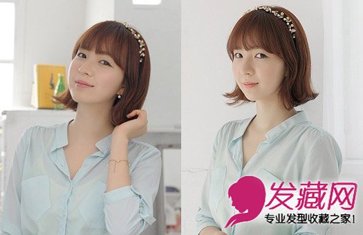 发型点评:空气感刘海清新甜美,配上精致的水晶发箍,甜美可爱感呼之欲出。