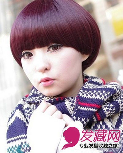 俏皮的短发波波头韩式造型,齐整修剪露耳的设计,尽显无比水灵可爱的大眼效果,棕红