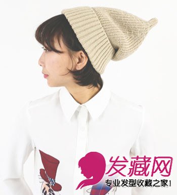 文艺范十足的衬衫是春日时尚品,黑色的层次短发,自然弧度设计,搭配毛线帽,时髦帅气,变身日系文艺女孩。