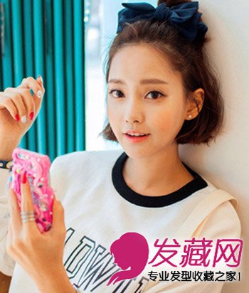 也要个性十足,清新的短发,发尾烫出蓬松效果,凸显精巧的轮廓,蝴蝶结发带显露额头,简练运动风格装扮,清爽又不失女人味。