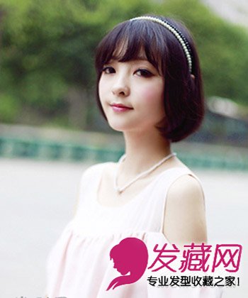这款日系风格的短发非常适合可爱范的你,稍稍蓬松的头发使你得得发顶饱满,几缕轻波的齐刘海,发箍点缀,恬静女人味十足。