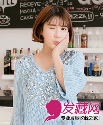 略显厚重感的内扣短发,自然恬静,一层薄薄的韩式空气刘海,呈现出夏日少女 小慵懒清新气息。