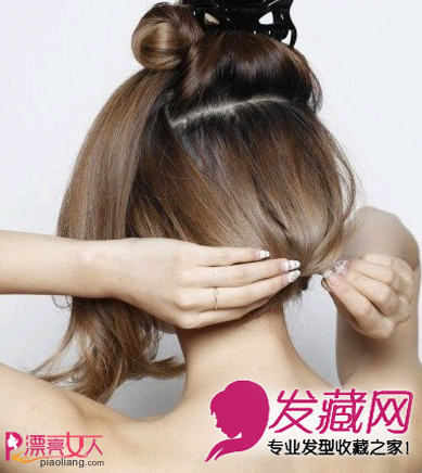 ¡¡¡¡½«¶úÉÏ·½ÇøµÄÍ··¢¹Ì¶¨£¬¶úÏ·½ÇøµÄÍ··¢Ôú³ÉÂí⣬ÔÙ´Ó·¢È¦½«Í··¢³ÊÉÈÐÎÊÕ½øÈ¥£¬Ê¹·¢È¦Òþ²Ø£¬Ê¹ÓüÐ×ӹ̶¨¡£