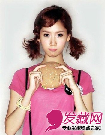 都很受小女生的喜欢,而韩国这款短发扎成的双马尾再配合蓬松感的造型更显可爱调皮感哦。
