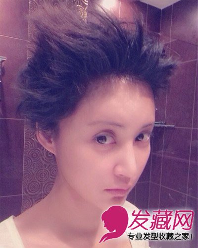 头发全部向上的立体短发造型,显得有点怪异,这难道就是二姐世界的另类时尚。