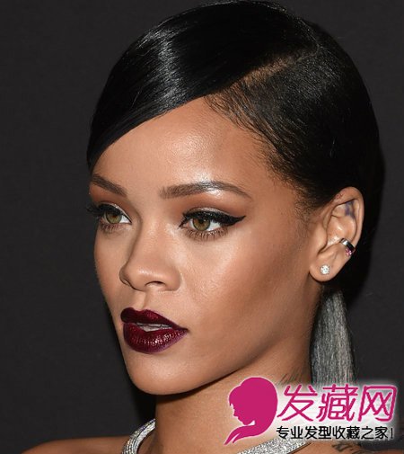 【Rihanna】极简的扎发造型时髦摩登,整个发型用造型产品打造出一丝不苟的景象,抛弃了夸张发型的蕾哈娜反而显得更高端有型。