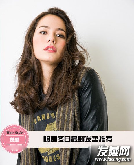 发型点评:这是当下最流行的一款卷发设计,大波浪卷发烫出绚丽弧度,前额的刘海烫出翻转线条,露出光洁额头,大气感尽显。