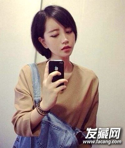 中比较短的一种,好像娃娃头一样可爱俏皮,偏分的斜刘海清纯显气质。