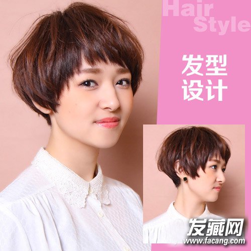 小编点评:对瓜子脸女生来说,这款齐刘海超短波波头几乎露出脸颊的大部分,搭配褐色挑染,凸显直率的女人味道,碎刘海服帖额头,带来可爱感觉呢。