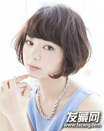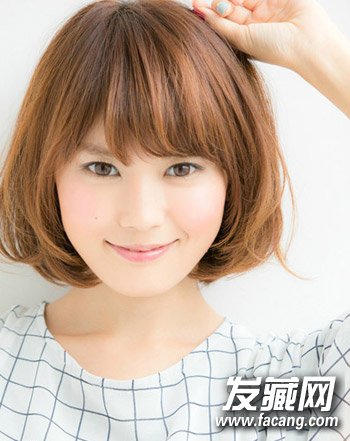 发型点评:厚重而蓬松的刘海遮盖住眉毛凸显出水灵的大眼睛。蓬松的波波头短发立体感十足,展现出少女特有的灵气。