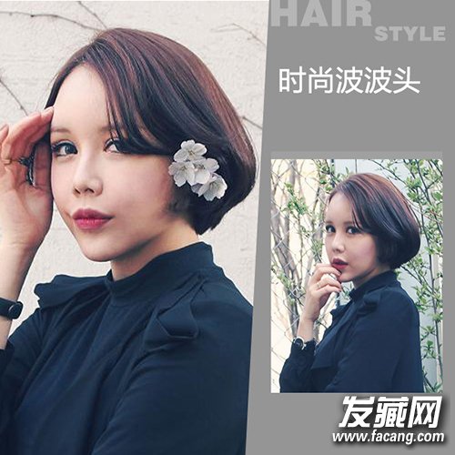 圆脸的妹纸剪波波头除了能显萌,还能显得非常知性和成熟。这个发型是齐耳的长度,将刘海四六分,露出额头,刘海自然拨到一侧,另一侧的头发塞到耳后,发尾整齐,烫到微微蓬起,洋溢着满满的成熟美。