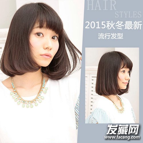 微微内扣的齐刘海显得自然而乖巧,及肩明显内扣的发尾让MM显得更加清纯可人,减龄效果较好,适合的人群也比较广泛。