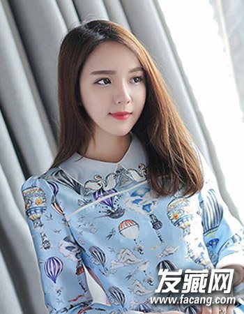 以清新飘逸的中长直发造型设计为主来增添韩式女生十足的气质感,而中分的造型同样将韩式女生精致的鹅蛋脸完美的呈现出来,时尚的棕色染发更添十足的温柔淑女风。