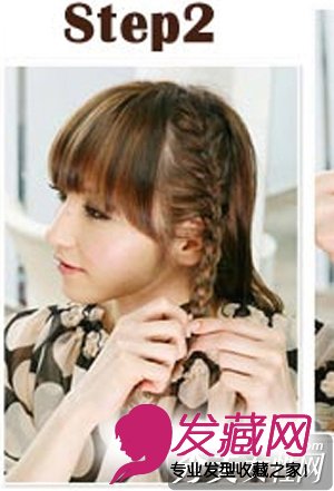 用加股编的方法编出两条小辫子。即以三股编开头,然后每编一次就抓取底下的头发添加进去一起编,这样辫子就会帖服在头顶,不易松脱,但又有“松散”的感觉。