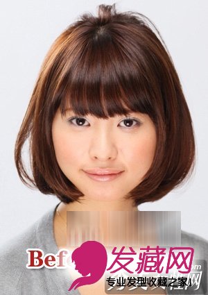 基本发型样式发尾低于前下巴的长齐流海BOB短发