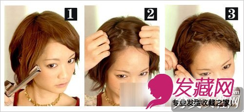 Step3:将两侧的头发分别沿额际线变成麻花辫子,变的过程中,逐步加入顶发和刘海以固定辫子的位置。(编辫子之前请不要用梳子去梳顺发束)