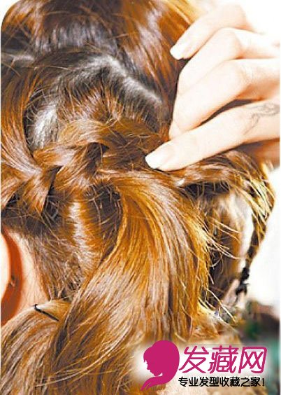 ¡¡¡¡Step3×ó¶ú¶ú²àµÄÍ··¢ÒÔÈý¹É±à·¢±à³ÉÒ»Ìõ±è×Ó£¬²¢Óñè×ÓÕÚ¸ÇסÖжÎÍ··¢¹Ì¶¨´¦£¬ÒÔ¼Ð×Ó¼Ðס¡£