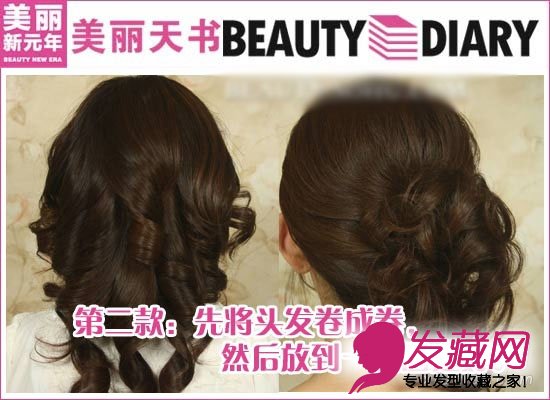 第二款,将头发卷成卷,然后放到一侧,用皮筋固定,形成一侧辫子。