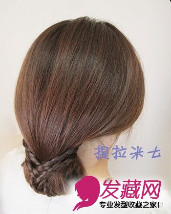 以下可以算是第二款发型了。咱们接着上面的来, 将余下头发也一并扎好,向上挽,用U型夹固定,U型夹一定要连接到4个三股辫,这样才可以固定牢,U型夹的用量根据发量决定。