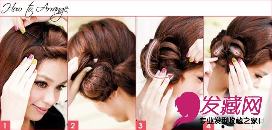 3、扭转的发束于侧边缠绕为包头,小黑夹插入固定即可