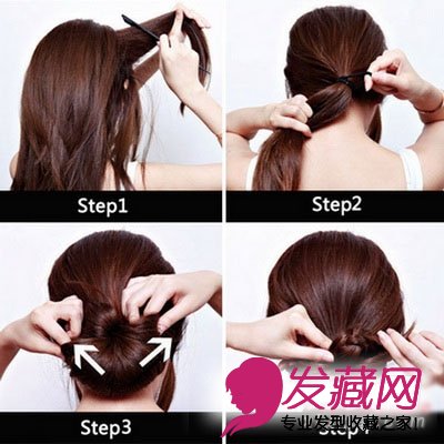 划出头顶U区,分层倒梳打毛头发根部;再拉起靠近U区外侧的两片头发,倒梳打毛头发的中部,让头顶看上去更饱满。束一个低低的马尾辫,并从马尾上部取出一束头发备用。