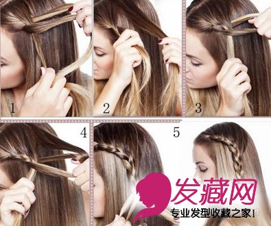 如果什么都没有,那么恭喜你还有辫子可以用来当发饰。从头顶开始分三股头发编辫子,注意方向是斜向上的,编两下再与当时位置余下部分一起继续编到颈部上方扎好即可。像是带了发箍一样的效果,简单又可爱。