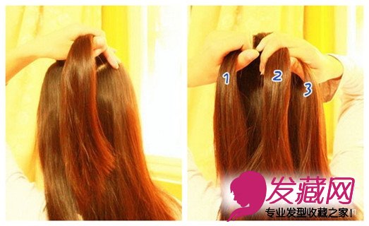抓起头顶一小撮头,将它分成3份 如图1、2、3份。