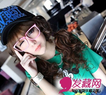 卷发双马尾,十分的萝莉可爱,整齐的刘海粉嫩减龄,搭配粉色的眼镜框和休闲鸭舌帽更加可爱无敌。