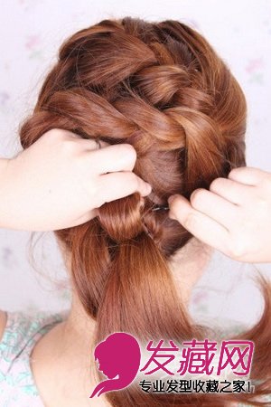 把马尾分成3-4小束,每束往上圆弧状夹好。