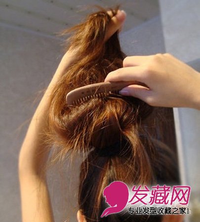 步骤四:把剩下的头发也向上拉高并用梳子倒着梳蓬松。