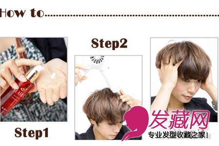 Step2:先用热风在头顶一边吹一边用手指把头发发尾的卷度抓出来,然后用冷风把头发吹冷定型。