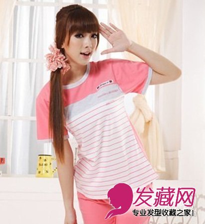 或者简单松散的马尾加个夸张的花朵发圈,有着调皮可爱的元素,让你更显年轻哦。