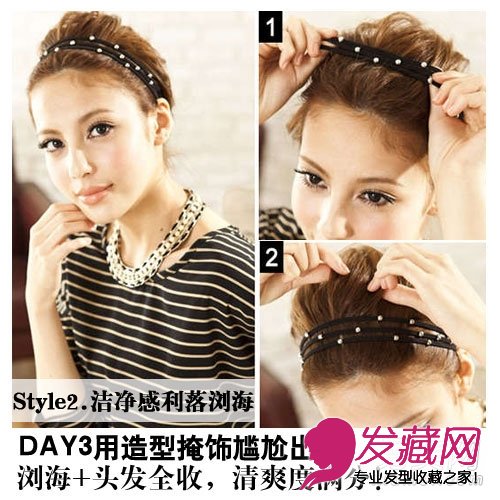 当头发严重出油时,将头发全部梳起是唯一的解决之道。但是绝对不能有浏海,所以首先要让额头净空,超油的刘海除了看起来不雅观之外,甚至还会引起额头的痘痘危机。