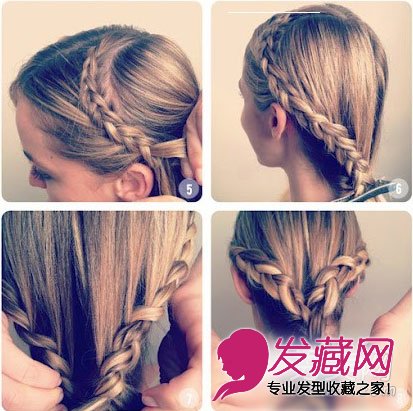 8.完成后,这里需要一点点的小技巧。你可以将左右两边的头发汇集在一起,然后分成三股,继续编头发
