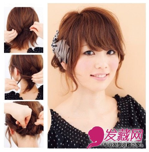 1. 短头发的MM头部后面的头发很容易抓取,可以分成几股小小的编一下再扎起来。编织在一起的头发能让发型更美更具线条感,而且对于短头发来说这样不容易散开。