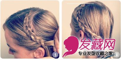 5.把头发编到耳后,然后你可以开始在编发的过程中将自己的头发一点点加进去,注意,再呢编到耳后之前不要加入自己的头发,这是关键