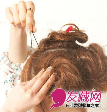 步骤三:将三束马尾扭旋起来,然后用U型发夹夹好。