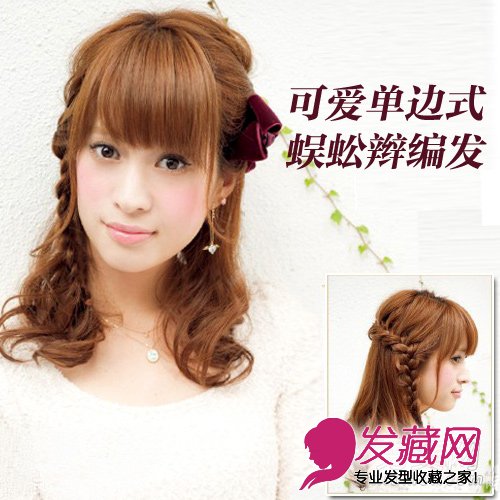 这款发型表现出甜美和青春的形象,却不乏温柔。慵懒的发丝,让整个头型和背影显得更协调,利用优雅发饰的衬托显得更加迷人。耳际两边短短的刘海和头顶蓬蓬的弧度,放在耳前很有修饰小脸的效果,甜美指数直升!