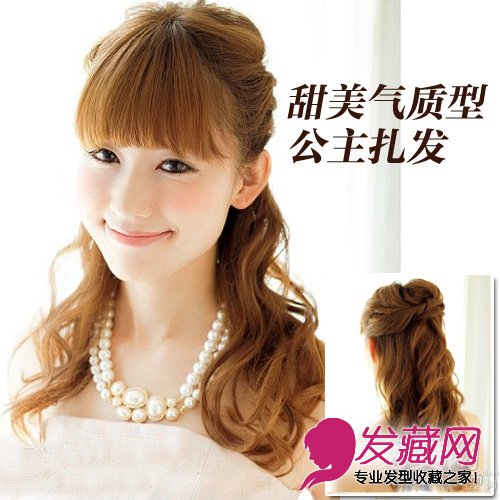 放弃了繁琐的编发,只是用简单的手法将头发分区扭转,即可打造出优雅不失甜美的公主头扎发,修饰脸型又带几分气质感,很适合忙碌的OL喔。